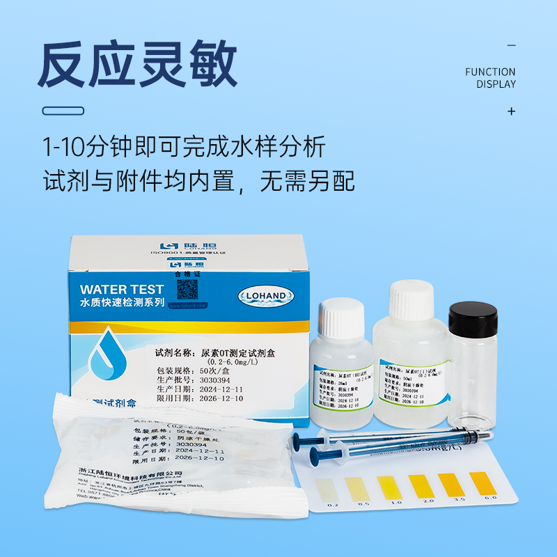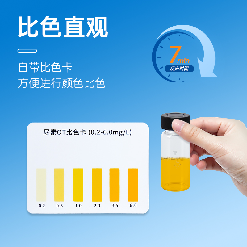 检测范围:0.5-1.0-1.5-2.0-2.5-3.5-5.0-8.0mg/L、检测次数:20次/盒、保质期:2年、保存条件:4~8℃冰箱中。